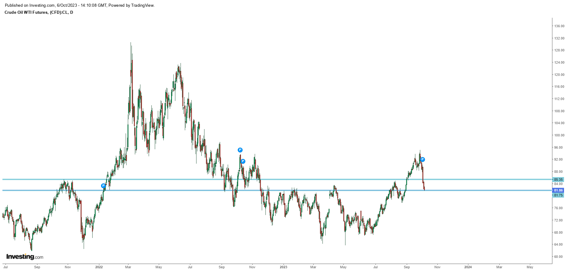 O oil tocou numa resistência forte e reagiu em baixa, mas o mercado só fica sob controlo dos ursos com a quebra dos 83-84.