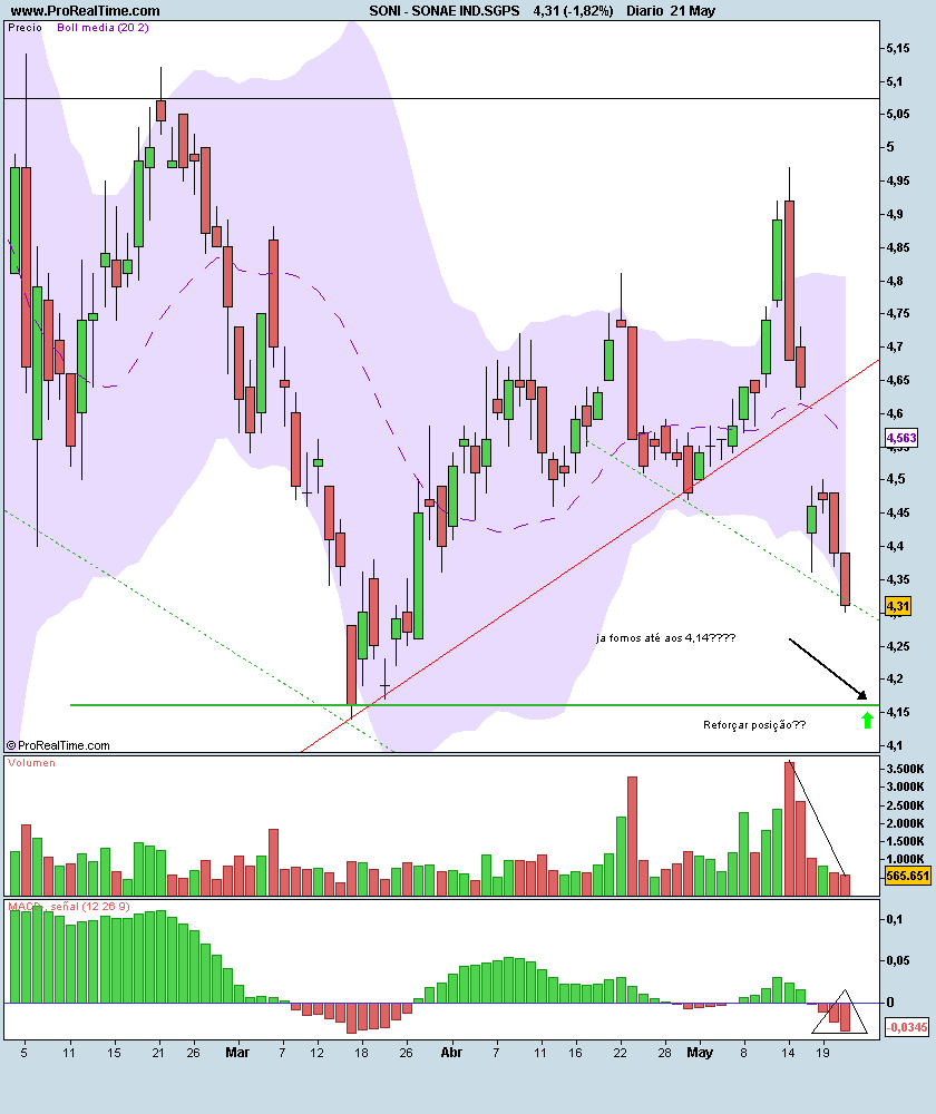 Ainda não foi hoje, mas pelo desfecho dela no presente dia, não deverá faltar muito para os 4.16 serem testados novamente. Não estou a ver um grande futuro, pelo menos no curto prazo para a SONI. A tendência é de queda e bem acentuada...