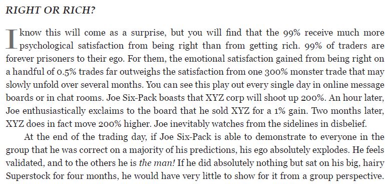 A trading truth: When you're right, you never have enough on. When you're wrong, your position is always too big.