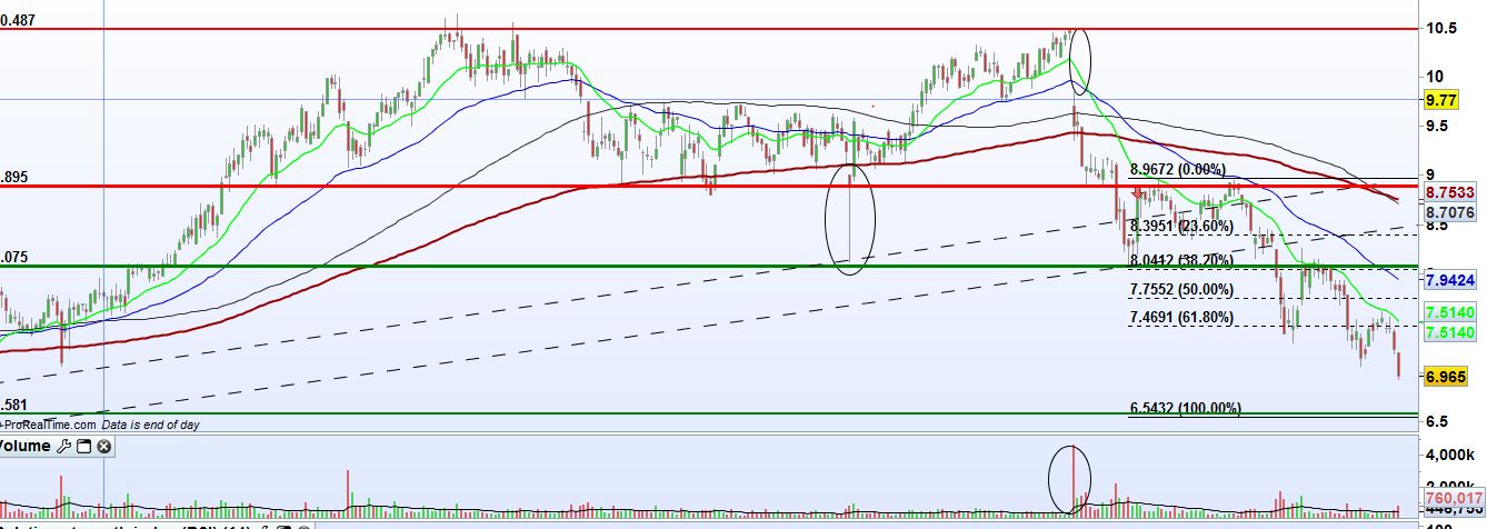 A quebra do suporte dos 8,20 foi determinante e marca um novo ciclo na acção. Os sinais de fraqueza a partir daí foram naturais e evidentes.