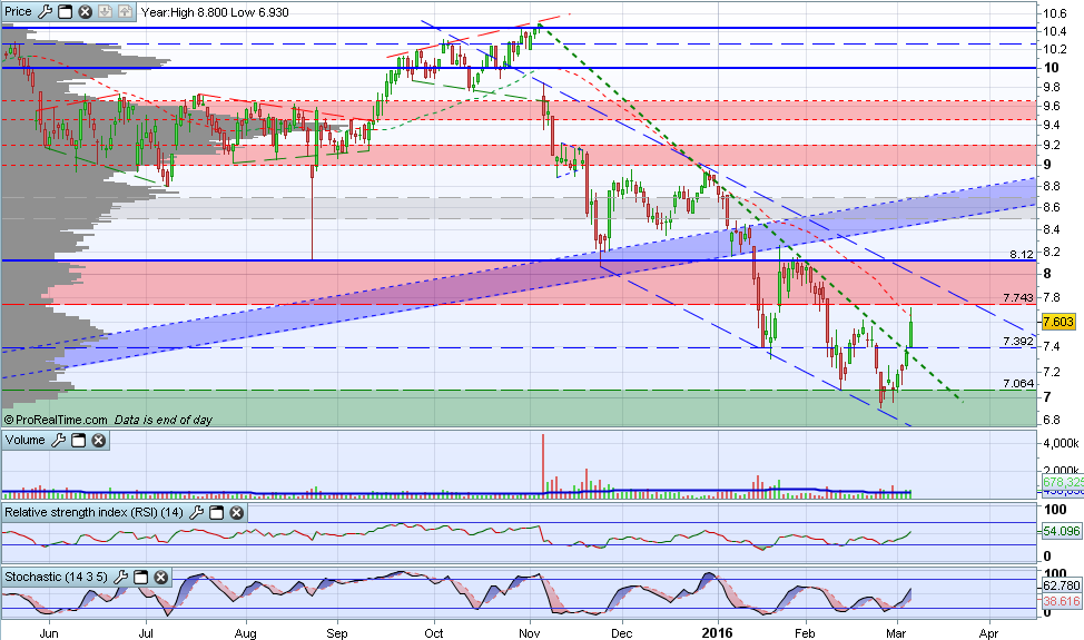 Após ter aguentado na zona dos 7 euros parece querer encetar uma recuperação.