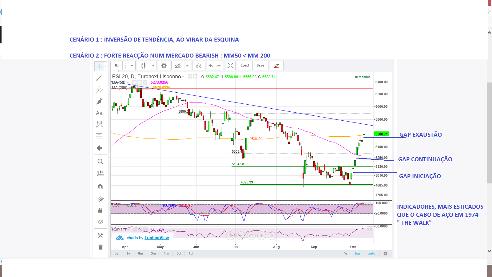 JohnyRobaz Escreveu:Visão optimista vs. Visão Pessimista.Ambas envolvem um embate na LTD actual com retracement até à zona dos 5300. De acordo com os meus limitados conhecimentos da coisa, para entrar longo ainda há que esperar pela golden cross que poderá ocorrer, se tudo correr bem, na altura da confirmação de mudança de tendência, reforçando-a.