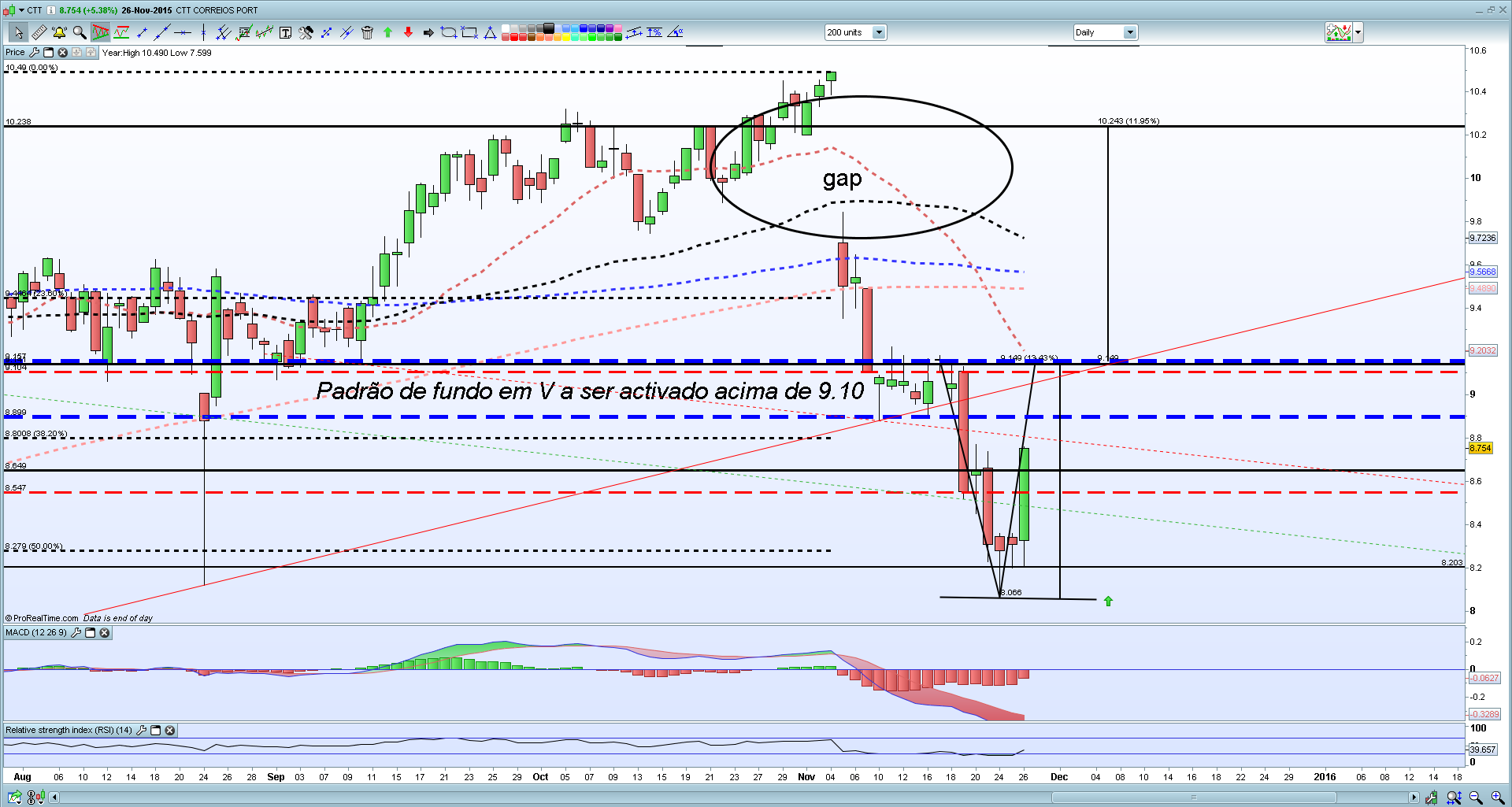CTT ... após reacção ao suporte de médio/longo prazo (bull) - (8.20) e reacção em alta terá como sua resistência 8.91 acima dessa 9.10 caso o faça e a margem no diário assim o diz podemos pensar num fundo em V que daria um prémio de aproximadamente 12% para quem ainda nao entrou e pensa em entrar os 9.10 poderá ser a paragem para abastecer :mrgreen: :mrgreen: :mrgreen: \:D/ \:D/ \:D/ bons trades