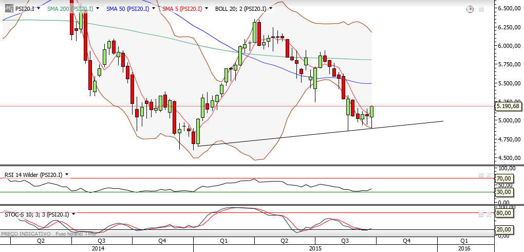No entanto, a morning star está lá e é um forte padrão de reversão desta tendência descendente do PSI. Se quebrar a LTD terá ainda a resistência nos 5300... Tem bastantes muros para partir ainda, veremos...