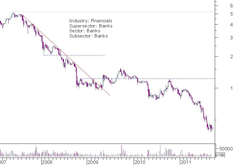 O Banif, como não poderia deixar de ser, apresenta um perfil incrivelmente semelhante ao do BPI, do BCP e do BES, o que inclui o seu frágil momento técnico actual, com a cotação em autêntica queda livre visto não existirem suportes relevantes à vista.