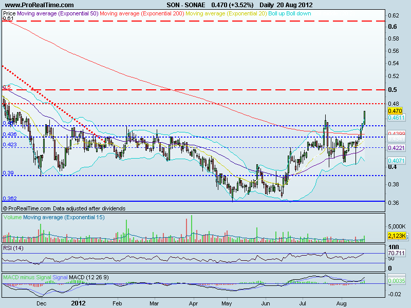 o sonae tem seguido religiosamente a mm15 nos ultimos dias. os .54 estao muito dificeis de passar e o volume tem vindo a cair tal como o rsi... sairam alguns dados de vendas satisfatorios nos states vamos ver se os restantes dados impulsionam a sonae
