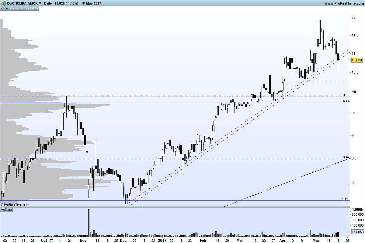 O titulo tem a MM50 nos 10.50 onde se pode segurar, abaixo desse ponto provavelmente poderá disparar stop loss e realização de mais valias a nível inferior e percebo o stop loss a 10,55.