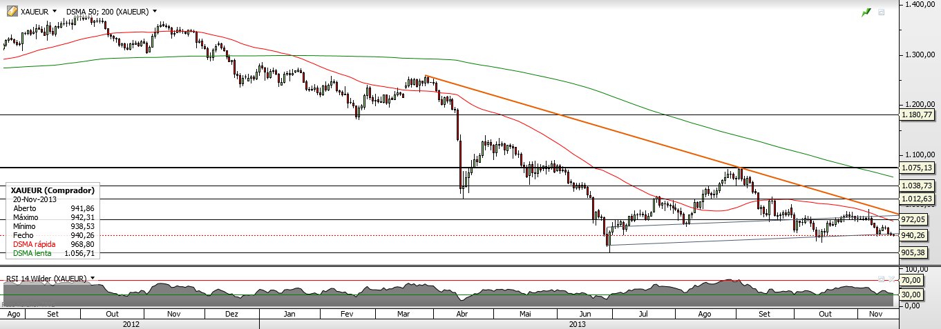 Parece que estamos numa zona crucial para o futuro próximo da cotação do Ouro.