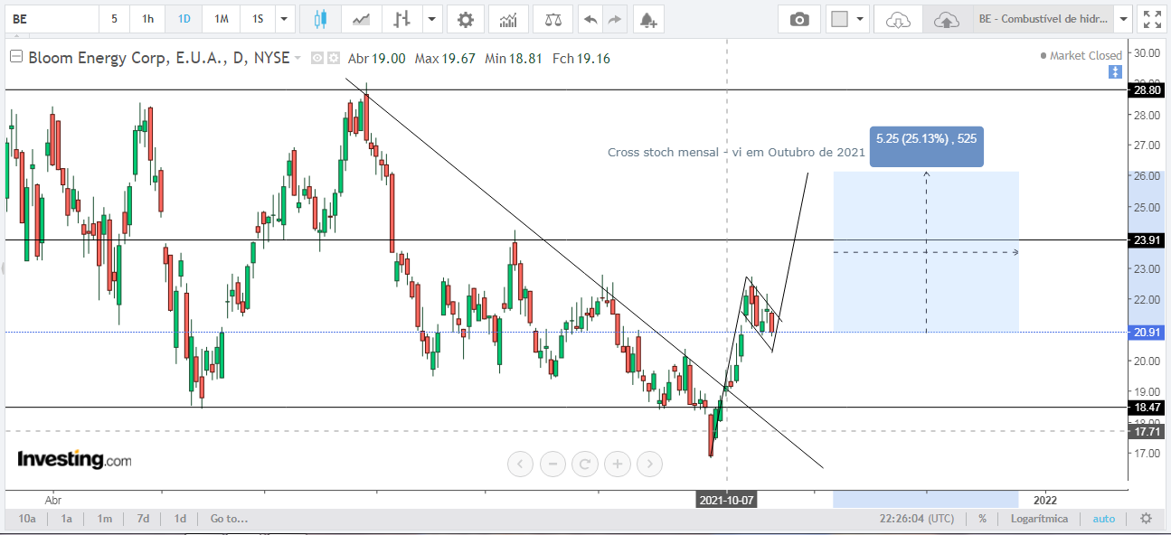 Após o post do "BearManBull", isto é, desde a semana passada a BE foi formando um possível padrão "bull flag". Em que o padrão bandeira se tornou mais comprida com as velas de quinta e sexta-feira passada.