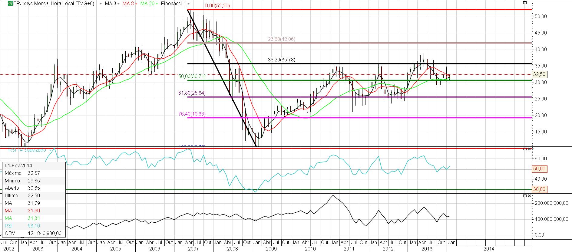 Há um fundamental que pode faze-la andar de lado esse ano todo. Numa entrada a 10,90 USD e uma resistência de 12,61 USD e bem lá se foi 2014 com 21 paragens já programadas na produção além dos acidentes e paragens forçadas, desde a refinação a extração. Por outro lado o novo governo eleito poderá trazer novos objetivos aos 18,03 USD, ainda dentro de 2014.