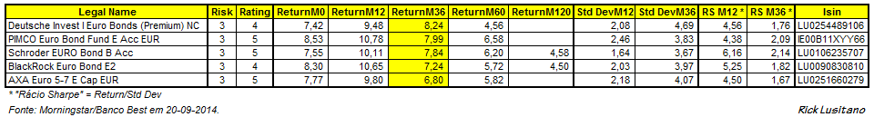Queria na altura ter colocado um quadro de comparações entre os fundos de Obrigações Diversificado EUR, mas tive que esperar pelo fim de semana, para estar tudo parado.