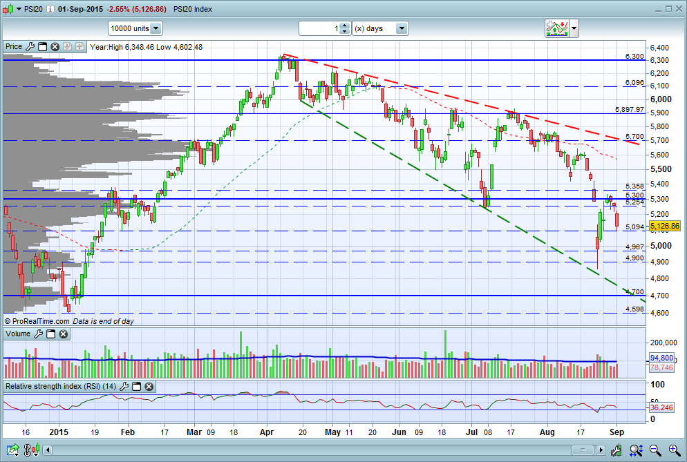 O PSI tem estado relativamente ainda mais fraco que restantes indices e com pouco volume.