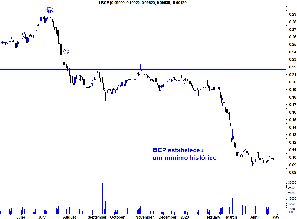 O histórico da última década do BCP, é fazer mínimos históricos
