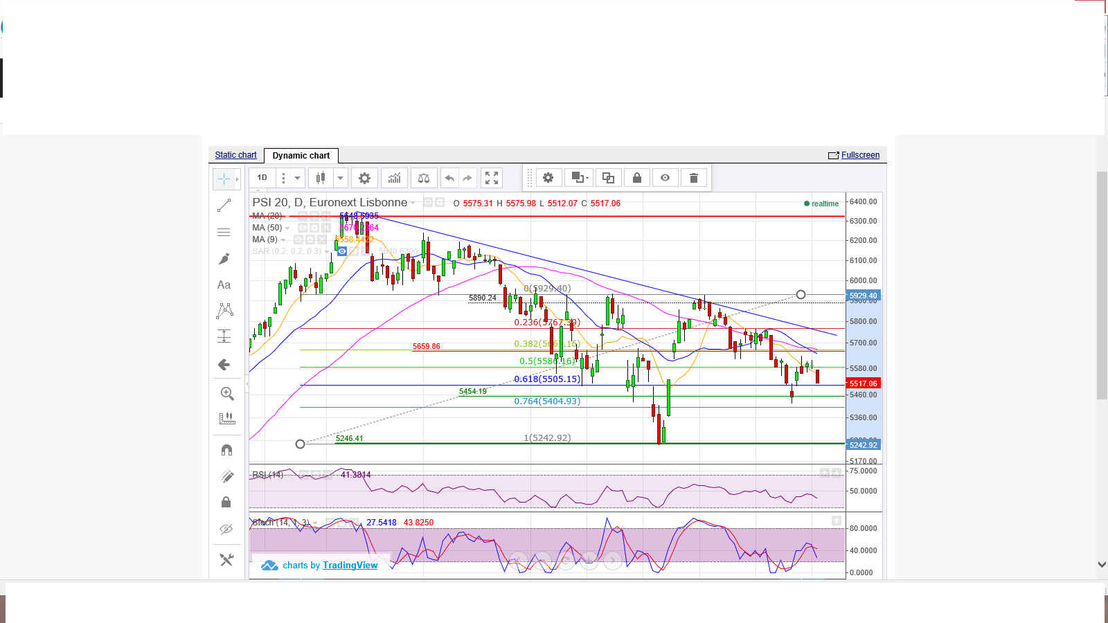 MM 200 a ficar para trás.... em cima dos 61,8% de Fibonacci