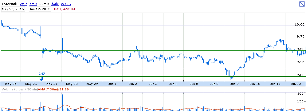Apesar do mau aspeto entrei no final da sessão. O fundamento é só um, está em cima do suporte, se quebrar não cai nem o Carmo nem a Trindade, se o suporte cumprir a sua função, que é suportar, melhor. O Stop está abaixo da linha, não tenho target automático, mas estou a considerar a zona dos 9.45 paus.