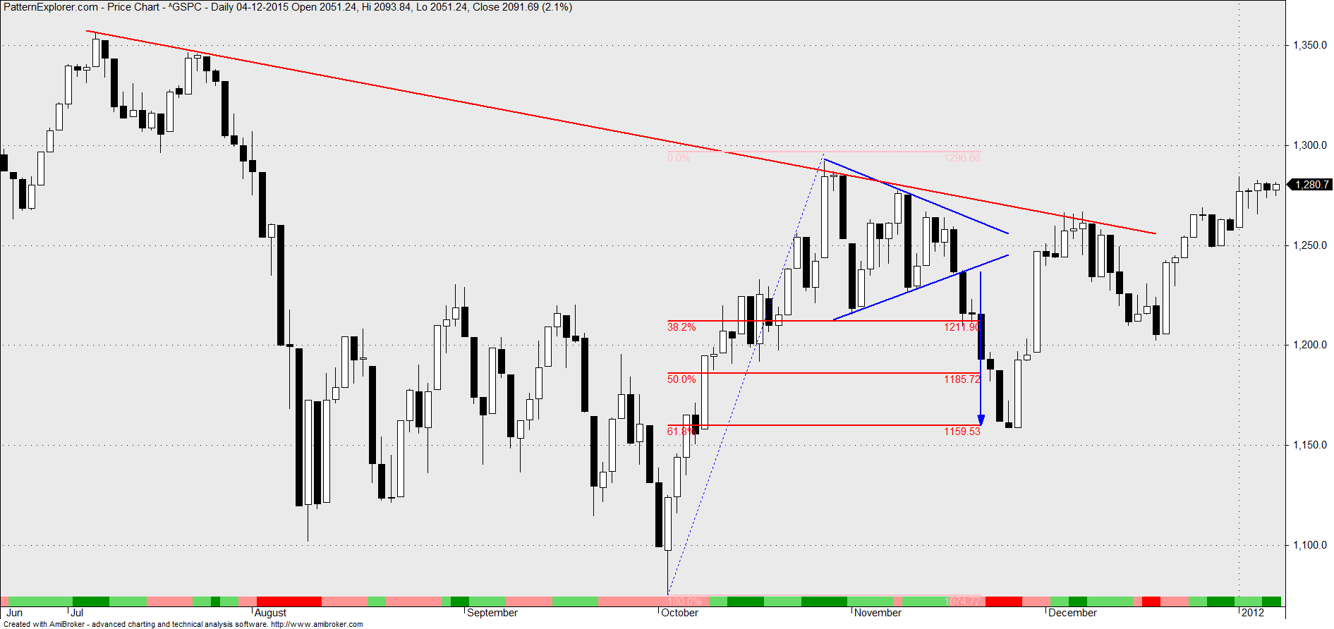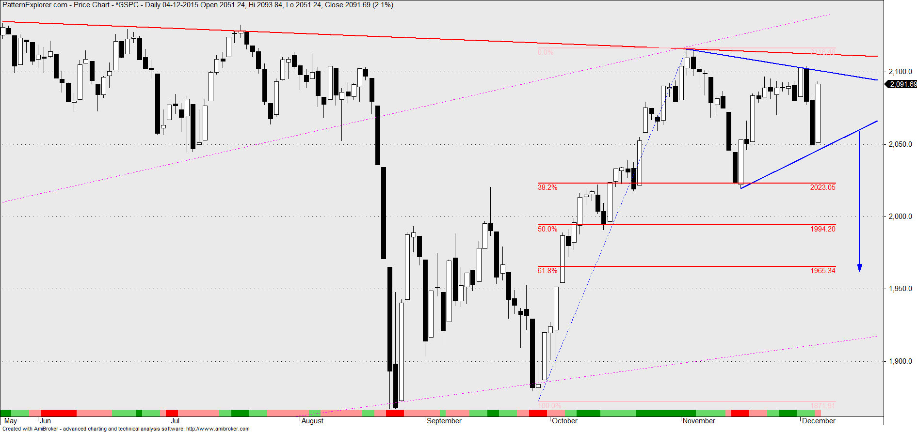 um exemplo dum triângulo simétrico que quebrou para baixo. fazendo as contas consegue-se ver que a sua amplitude foi superior a 1/3 do movimento antecedente