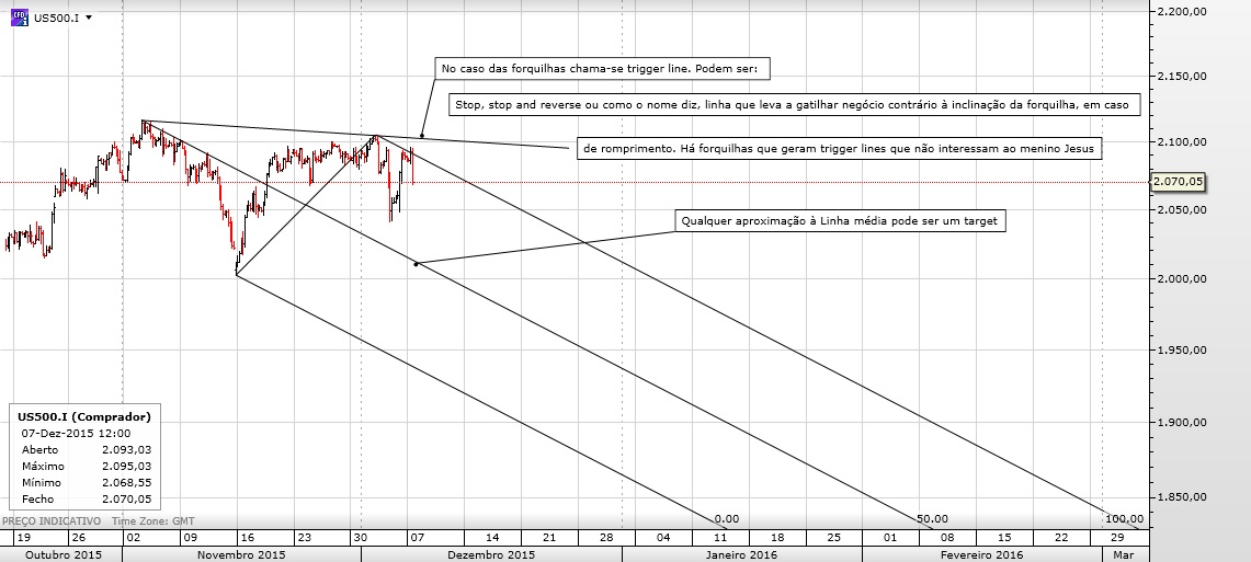 2.- A evolução do preço até aos ombros da forquilha é mimetizada depois de entrar nos dentes da mesma.