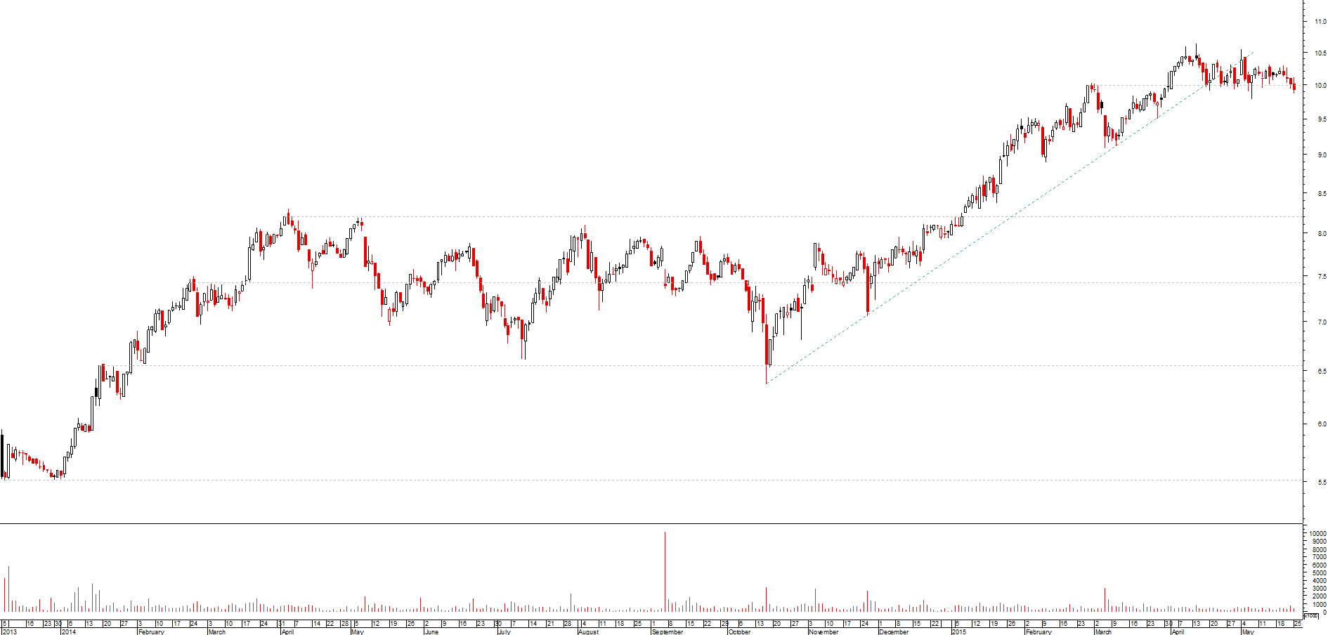 Em ex-dividendo tudo indica que este suporte será quebrado. E o próximo está só em 8,2. Se a cotação dezlizar até lá isso já não seria lateralizacao. E o Bull fica tremido?