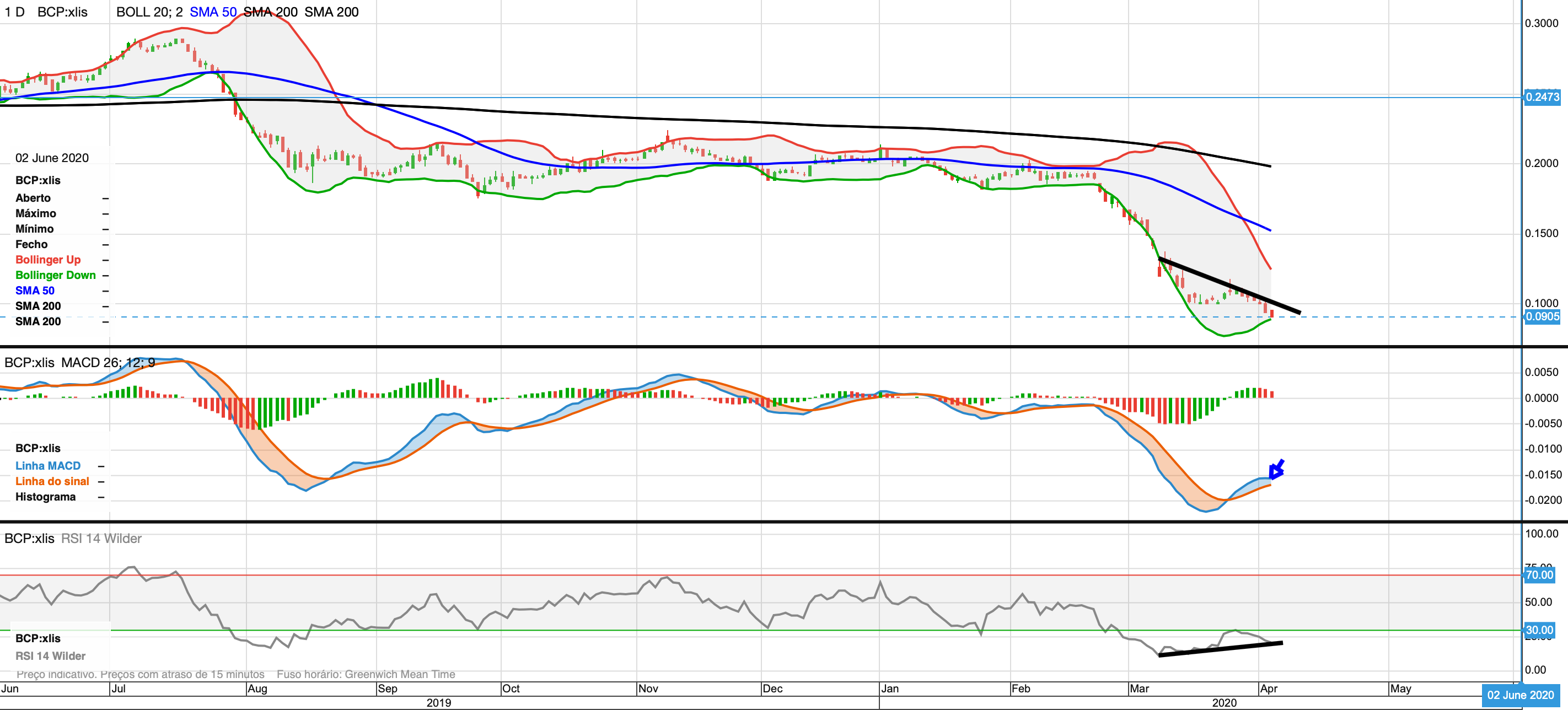 Agora em vez de reforçar na descida ,reforço nas subidas por isso não vejo esta descida como algo de muito mau desde de que um dia volte a subir,à espera de reforçar e baixar o preço médio. ( Se até lá ainda houver BCP