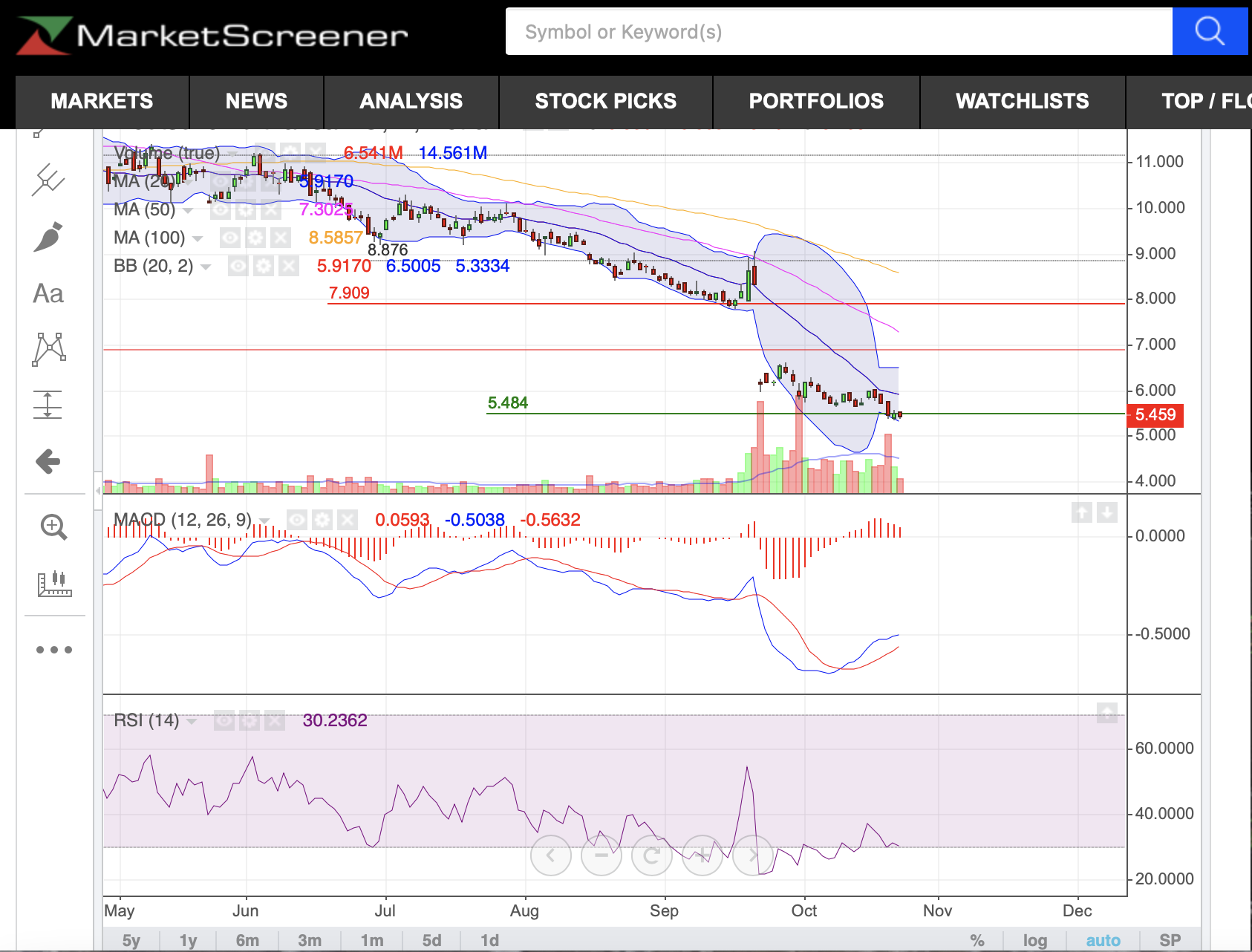 Eu vi no investing e no market watch.