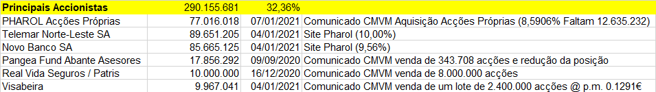 Já agora, deixo uma lista dos accionistas principais e conhecidos: