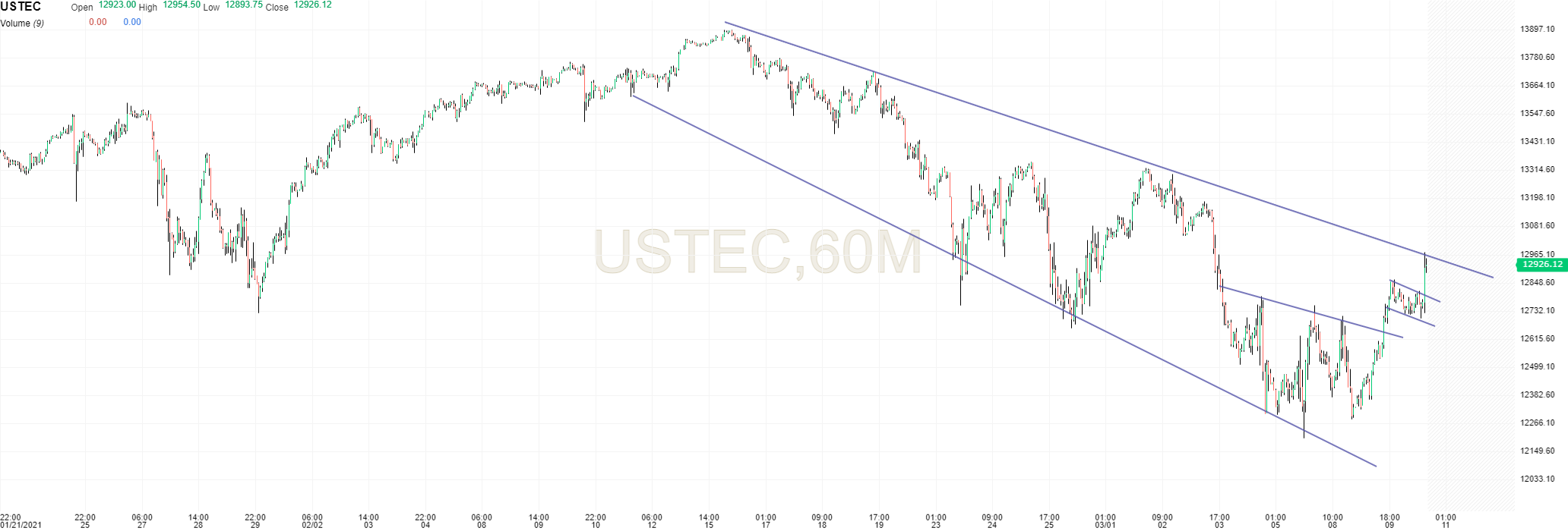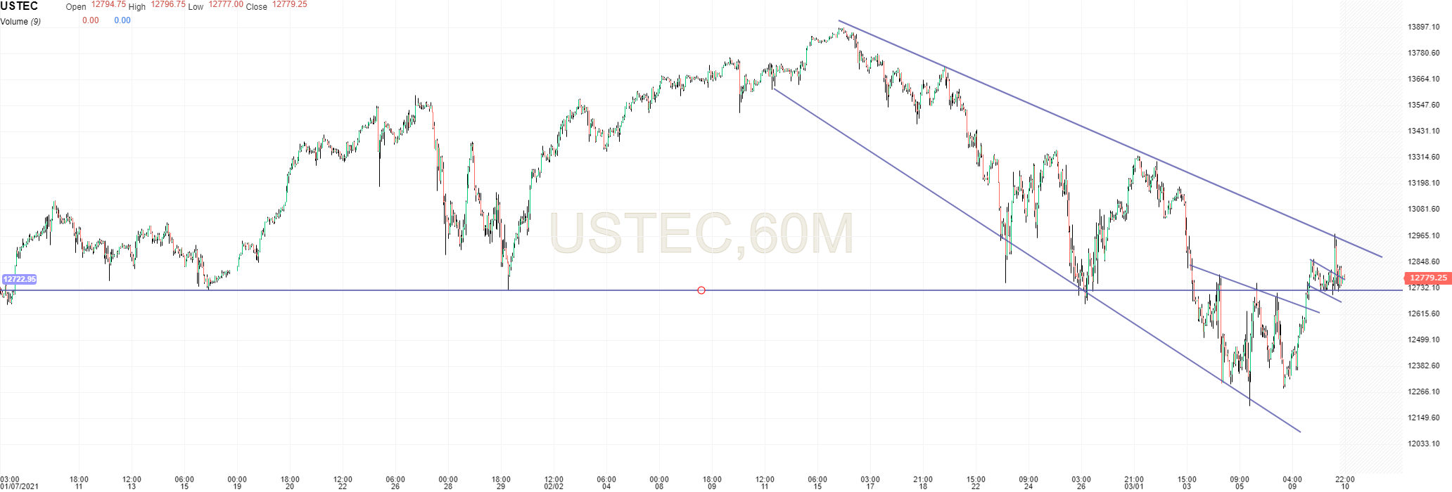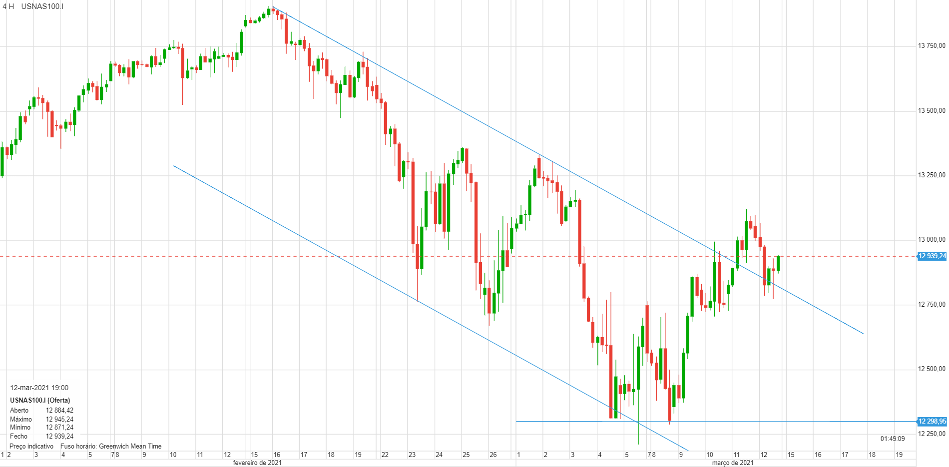 Tocou no topo do canal e reagiu mal. Aproveitei e fiz uma entrada curta nos 12960, mas o stop estava 100 pontos acima.