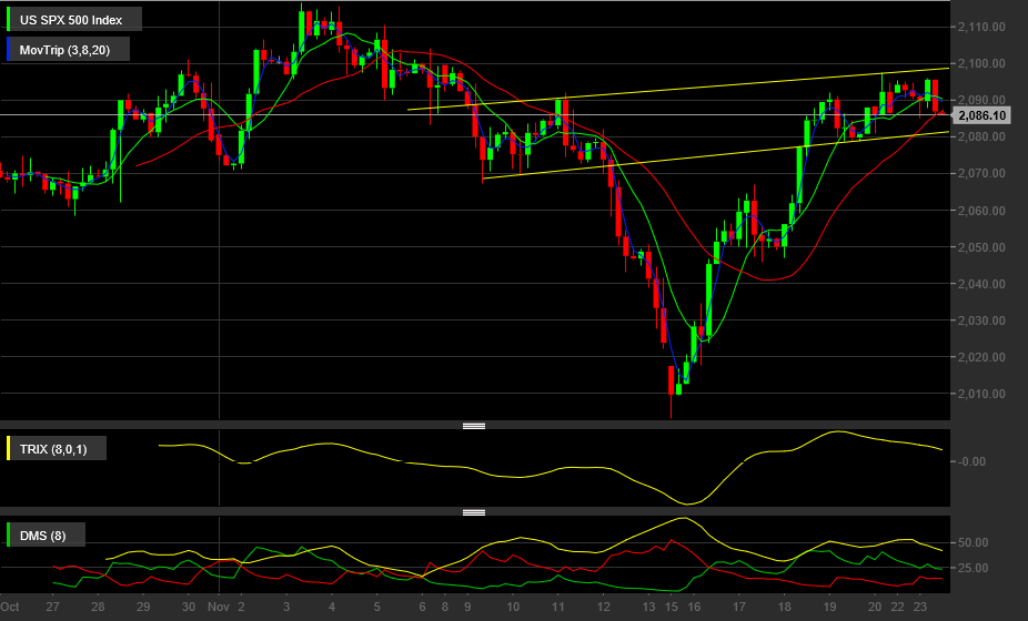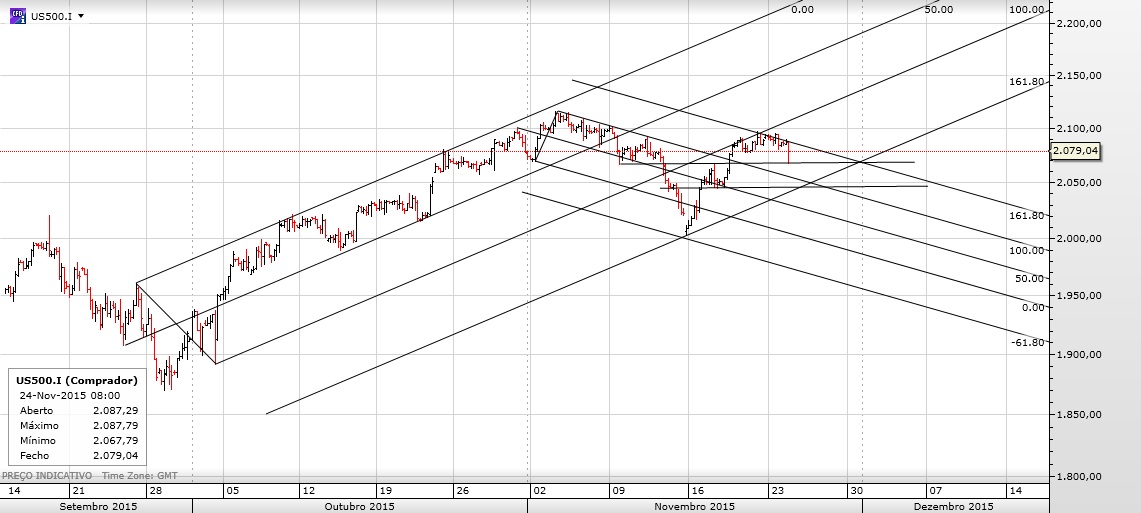 O SP500 está a fazer uma piquena correcção. Nada de especial tendo em conta o feriado de quinta feira nos states, com mercados fechados na quinta e abertos so metade do dia na sexta.