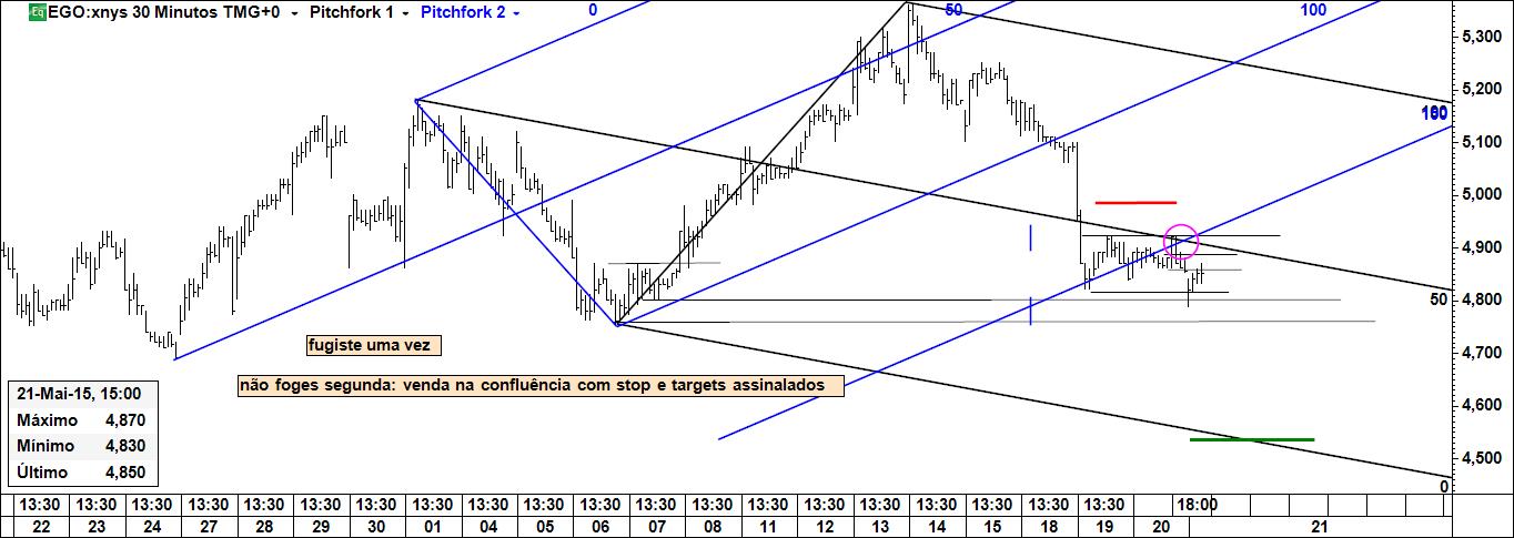 Não fiquei convencido. Fugiste a primeira vez, vou tentar apanhar-te numa próxima oportunidade. Os gráficos que seguem mostram o desenvolvimento dos acontecimentos. Agora é só fazer a gestão do risco e esperar que o preço se digne visitar a linha. E com este negócio se encerra a presente semana especulativa.
