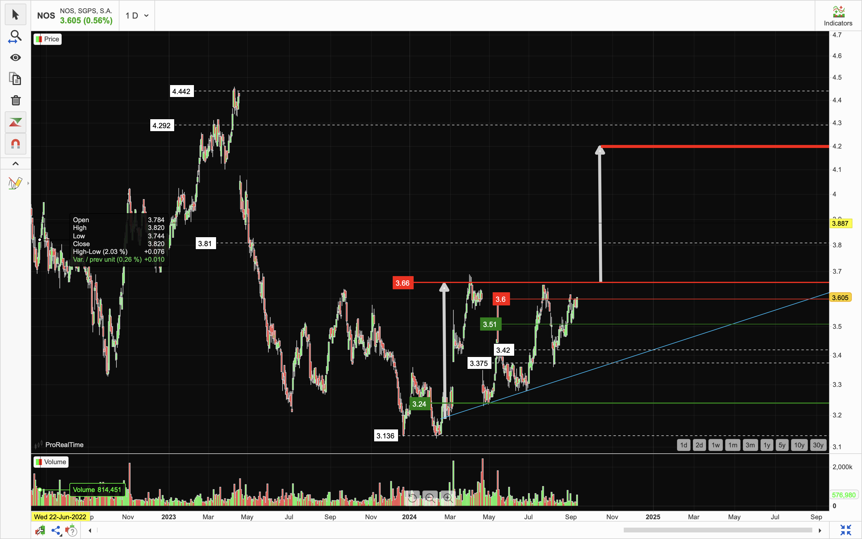 assim, mais dia, menos dia, a NOS está acima dos €5
