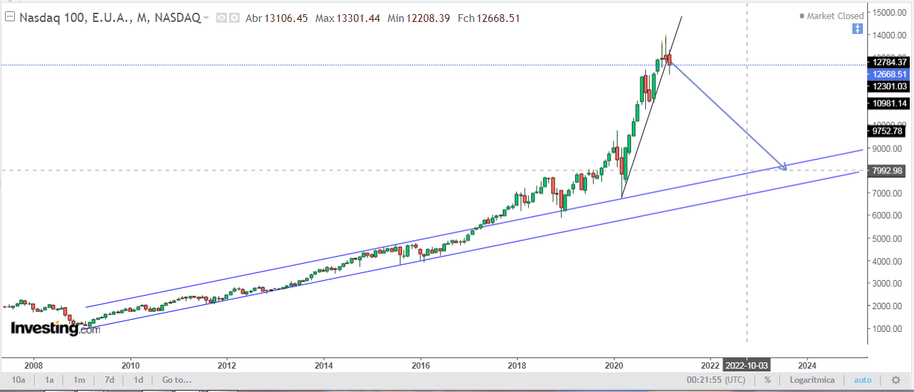 Deixo uma nota que isto é o NAS100 estamos a falar das empresas que conseguem agregar mais valor. Para mim o transferir capitais para o sector tradicional não serve. Se o NAS100 entra em underperformance e cai em bear market estamos a falar de problemas estruturais muito graves e provavelmente com consequências graves para a economia.