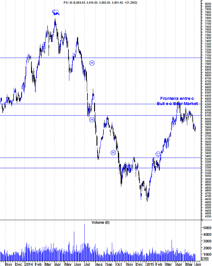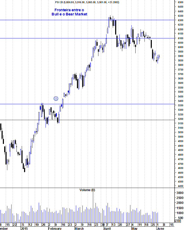 O PSI continua a sua correcção. Aquela que apelidei durante tantas vezes como a fronteira entre o "Bear" e o "Bull Market" foi um verdadeiro tecto para o PSI e os ursos conseguiram defender com unhas e dentes a sua derradeira zona de vantagem.