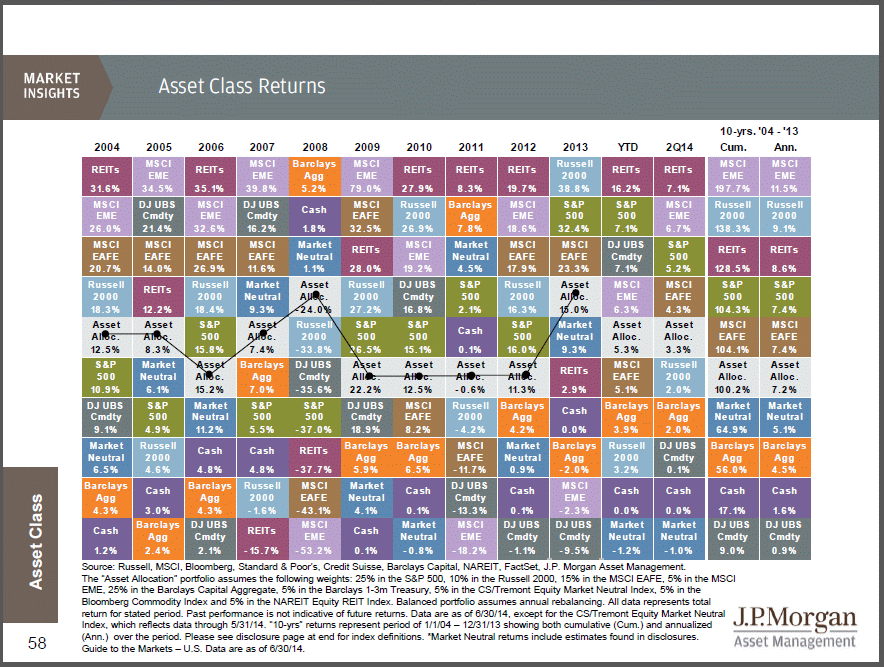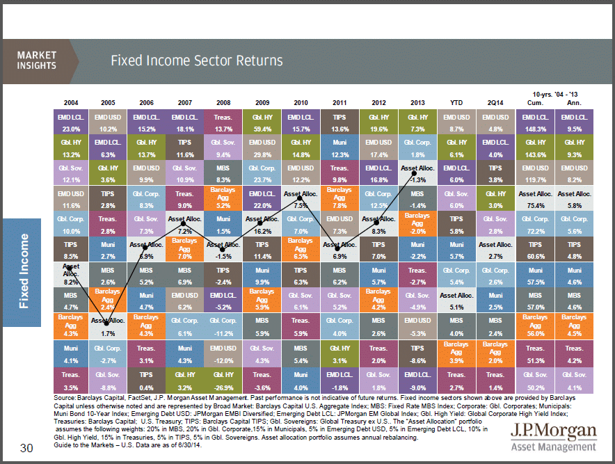 Para ilustrar deixo umas imagens retiradas do último paper trimestral da J.P.Morgan Asset Management, o Guide to the Markets (USA) que se encontra disponível na página deste tópico "Documentação":