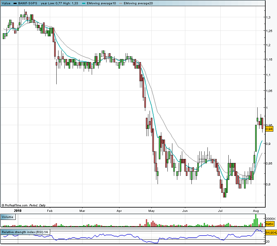 E por isso resolvi desmobilizar parte da minha carteira do risco dos proximos tempos. Acredito que a tendencia será de subida, mas apos a minha recuperacao espetacular com o Banif resolvi apostar uma boa parte no ... Finibanco.