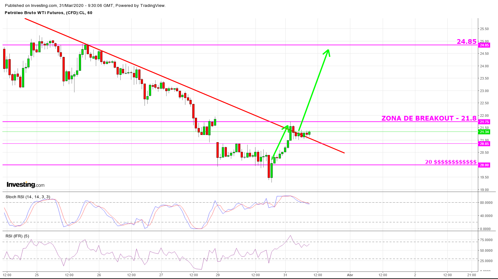 Rebound em curso. A pressão para o regresso a 2/3 sessões à tendência principal, de queda, mantem-se (e quebra dos 20usd no WTI) . O excesso de inventário acumula-se devido a uma manutenção dos níveis de produção e redução do consumo diário de -5 milhões de barris/DIA de JetFuel e de -18 milhões de barris/DIA de consumo geral (custo de produção Arábia Saudita 8usd/barril, Rússia 10usd/barril, Venezuela 14usd/barril, Brent 21usd/barrilShale Oil 32usd/barril.