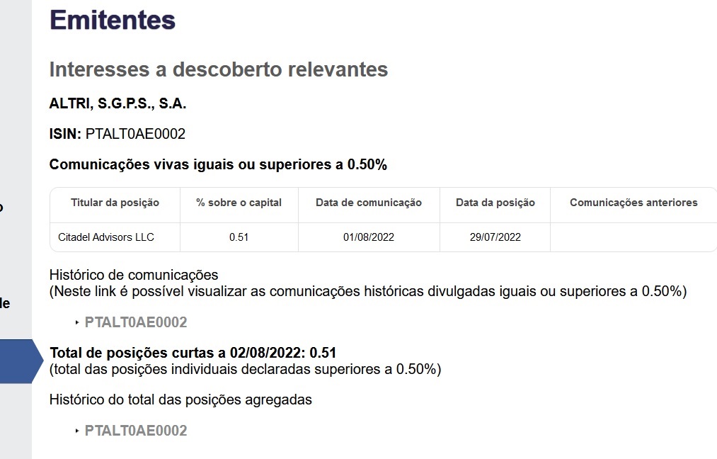 Acrescento o volume histórico que poderá ter sido a tal citadell que entrou de forma especulativa e não será contrabalançado nos próximos tempos