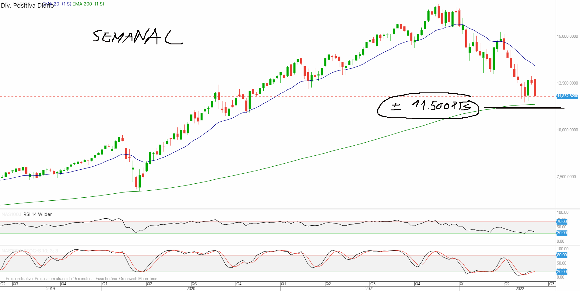 Estamos a chegar a 7 meses de bear market no N100 e pouco ou nada temos de ressaltos, vai em queda a pique. Desde meio de Maio parecia estar a forma uma base temporária, mas nada parece que está a tudo fora e ninguém quer ainda entrar.