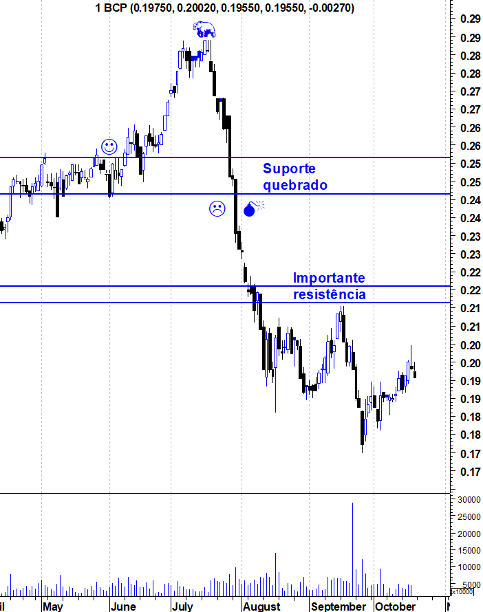 Quanto ao BCP, tudo mais ou menos na mesma, não cair é sempre bom para os contribuíntes portugueses... mas para investir nisto é preciso ter uma grande capacidade para assumir riscos altos... e já há muito que o potencial não compensa.