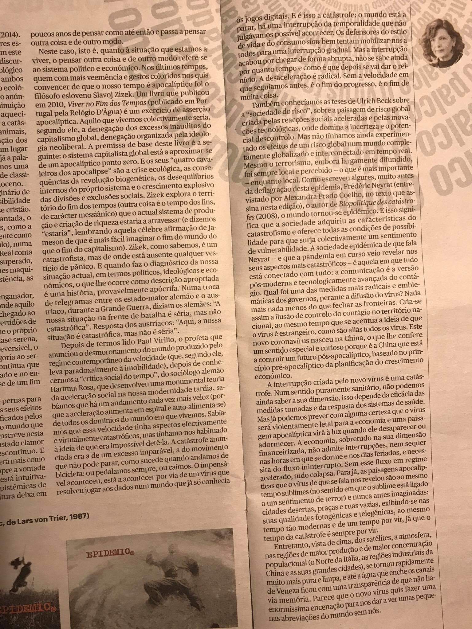 Para desanuviar, reflectir e numa vertente menos objectiva e mais abrangente do que vivemos hoje e o vírus veio despertar e demonstrar, deixo o excelente texto do António Guerreiro no Ípsilon: