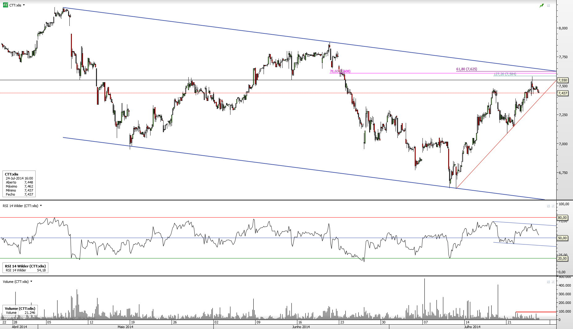 De notar que, sem grandes esquemas e teorias, a acção continua a ter um comportamento muito limpo ao nível de AT, fácil de identificar sem grandes volatilidades e que permite ao investidor disciplinado fazer bons trades, tanto quando dá sinais longos como curtos.