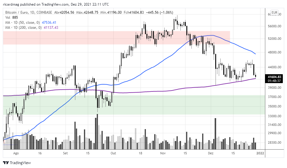 Até pode ir por ai abaixo ainda hoje mas no mês de dezembro a btceur tem sido milimétrica na MA200