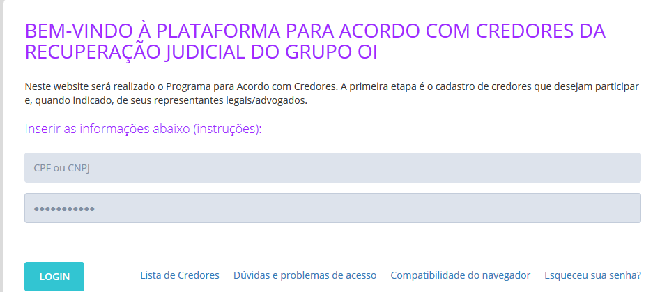 Já reabriram plataforma de cadastro (https://www.credor.oi.com.br/Login) para credores internacionais.