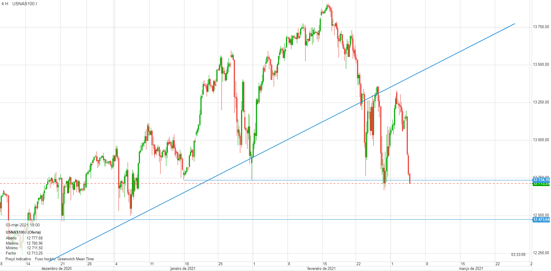 Neste momento estou neutro. Para mim o NAS100 fica completamente comprometido se quebrar a zona a vermelho. É um índice que consegue surpreender muito por isso é sempre preciso ter muito cuidado com os curtos.