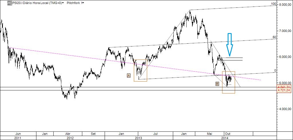 Esta terceira projeção significaria a rutura da resistência dos 6100/6300, muito relevante em termos de longo prazo para o PSI18...Não me parece que seja assim tão fácil, mas....Acho que se está a esticar muito...