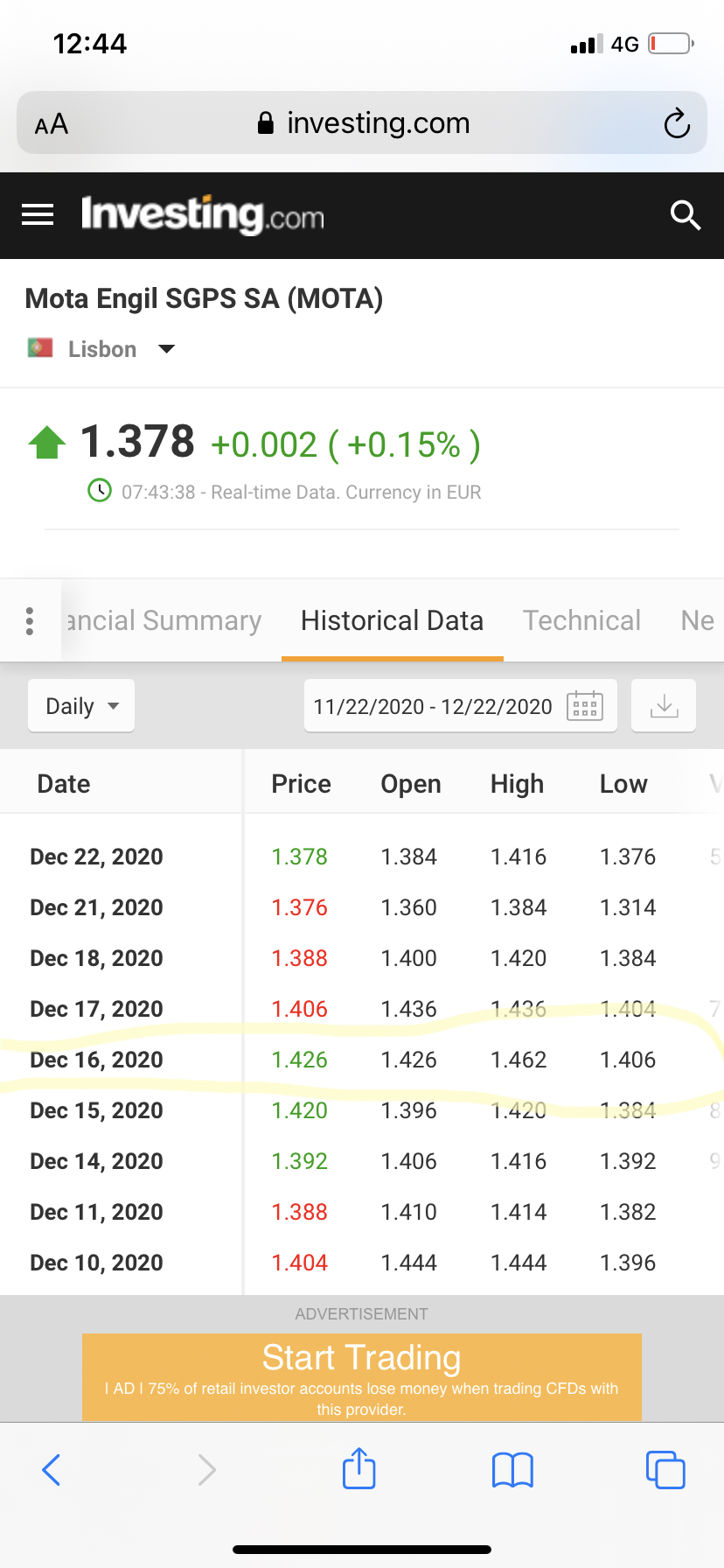Então mas tinhas comprado acima de 1.42 no fecho de dia 16, porque senao já não entravas a tempo de reforçar e agora sais abaixo?