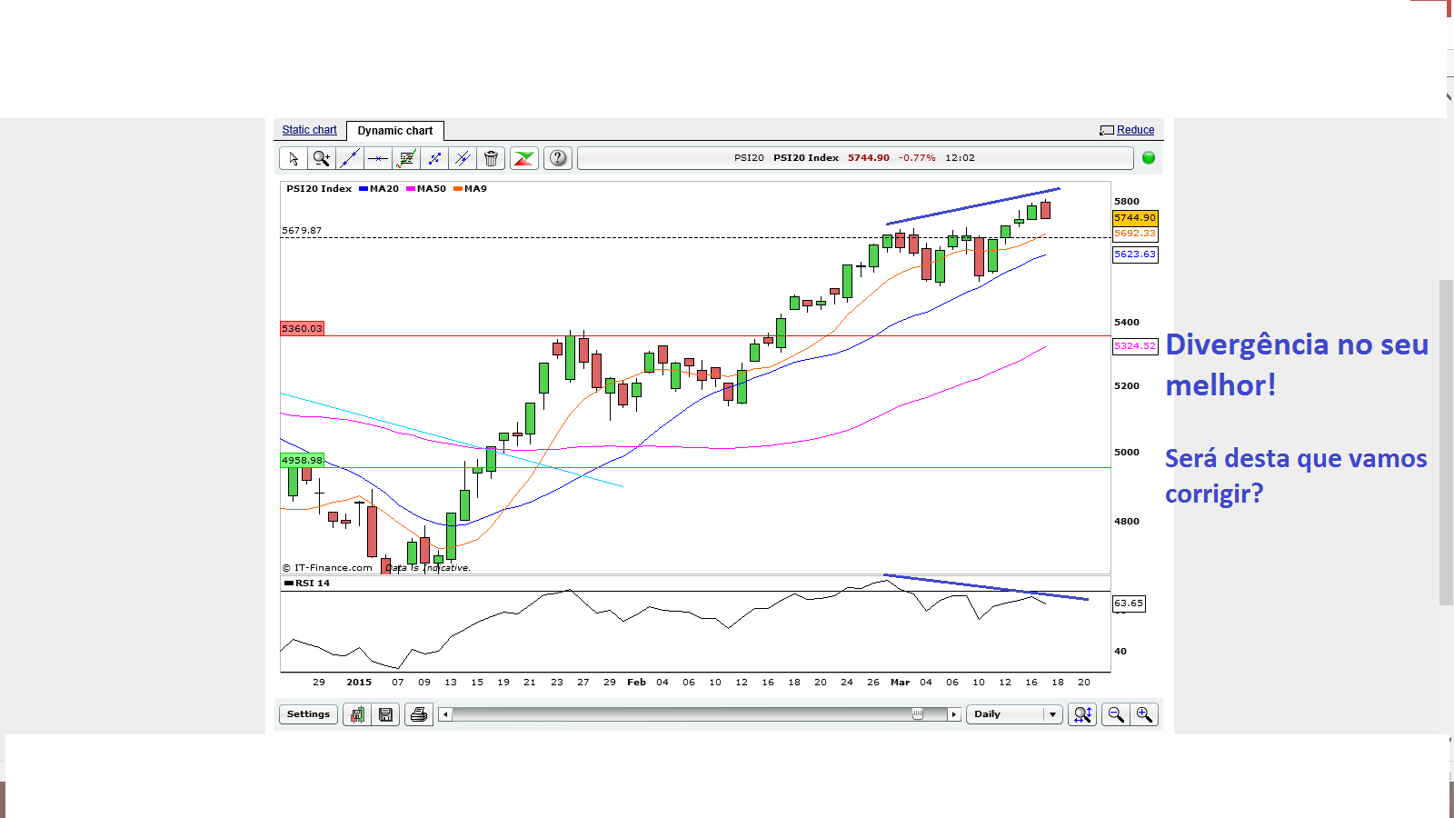 Fica o meu gráfico, onde julgo que será desta que a divergência se vai sobrepor no curto prazo.