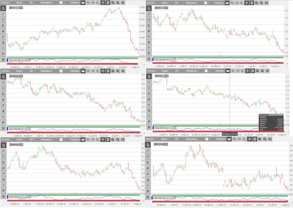 A sangria finalmente parece ter acabado, os nao sei quantos dias de quedas consecutivas têm hoje 1 fim e poderá ser o inverter de rumo. Hoje sobe com força da parte da tarde já que de manhã foi outra tristeza. O RSI tem sempre razao e ja estava no limite, agora a questão é ressalto/correção, para continuar o seu rumo descendente, o que nao me parece, ou inversão de tendencia ja que me parece que todas essas questoes de guerra comercial e juros baixos ja me parecem estar incorporados no preço. Nao esqueçam da FED e BCE no rumo do BCP, nao é so o BREXIT e Guerra comercial
