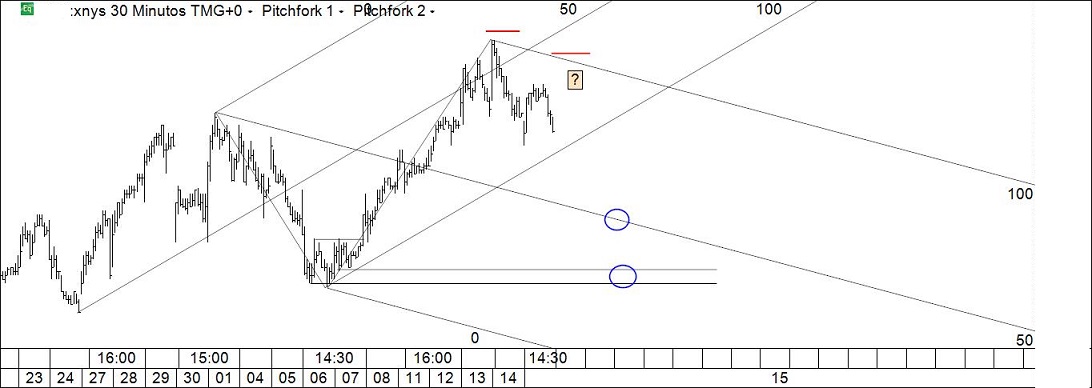 O Alquimista Escreveu:Dax 30 m: oportunidade especulativa para a semana que aí vem, agora que furou "o tal canal". A técnica é sempre a mesma: compra-se e vende-se nos limites com stoploss abaixo/acima do pivot relevante e target pelo menos na linha seguinte.