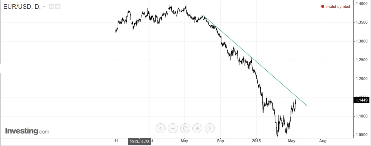a não ser, digo eu, que o preço entretanto fizesse um high superior a d1 após o qual voltasse à linha, e aí sim, já pareceria daquelas tuas linhas únicas com potencial para longo.