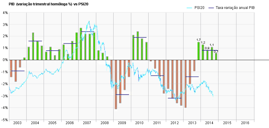 Por norma se o PIB cresce, a bolsa cresce e o contrário também.