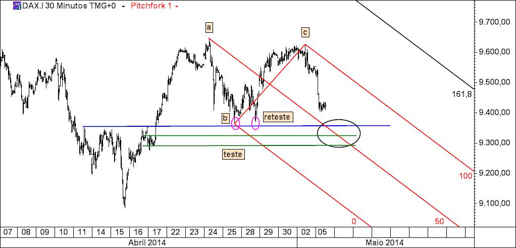 depois do teste-reteste à linha óbvia (há alguns dias disse aqui que poderia ser quebrada, mas não o foi) o preço deveria ter feito um higher high